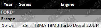 This oil service kit suits Ford Escape fitted with the T8MA and T8MB Turbo Diesel I4 engines.