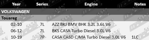This set of brake pads suits Volkswagen Touareg fitted with AZZ, BKJ, BMV, BHK, BKS, CASA, CASD and CJMA Turbo Diesel V6 engines.
