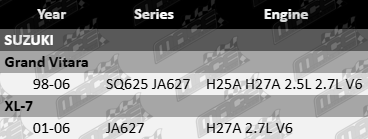 This set of brake pads suits Suzuki vehicles fitted with H25A and H27A V6 engines.