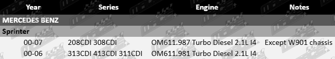 This head gasket suits Mercedes Benz Sprinter fitted with OM611.987 and OM611.981 Turbo Diesel I4 engines.