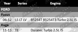 This engine mount suits Ford vehicles fitted with B5254T, B5254T3, and Duratec Turbo I5 engines.