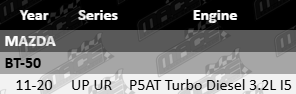 This engine mount suits Mazda BT-50 fitted with the P5AT Turbo Diesel I5 engine.