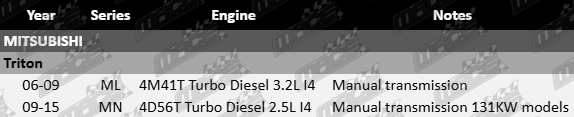 This engine mount suits Mitsubishi Triton fitted with 4M41T and 4D56T Turbo Diesel I4 engines.