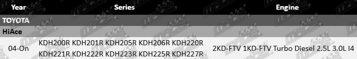 This pair of engine mounts suits Toyota HiAce fitted with 1KD-FTV and 2KD-FTV Turbo Diesel I4 engines.