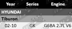This engine mount suits Hyundai Tiburon fitted with the G6BA V6 engine.