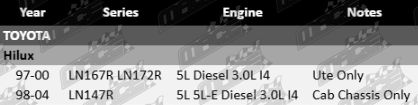 These exhaust headers suit Toyota Hilux fitted with 5L and 5L-E Diesel I4 engines.