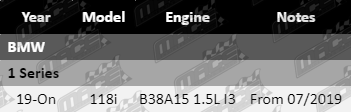This air filter suits BMW 1 Series 118i fitted with the B38A15 I3 engine.