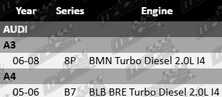 Browse these categories as well: Cylinder Head Gaskets, I4, BMN Turbo Diesel 2.0L I4, BLB 2.0L I4, BRE 2.0L I4