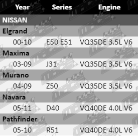 These ignition coils suit Nissan vehicles fitted with VQ35DE and VQ40DE V6 engines.