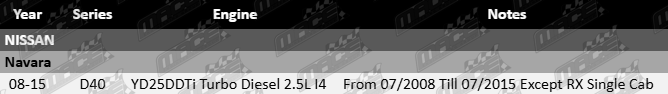 This snorkel suits Nissan Navara fitted with the YD25DDTi Turbo Diesel I4 engine.
